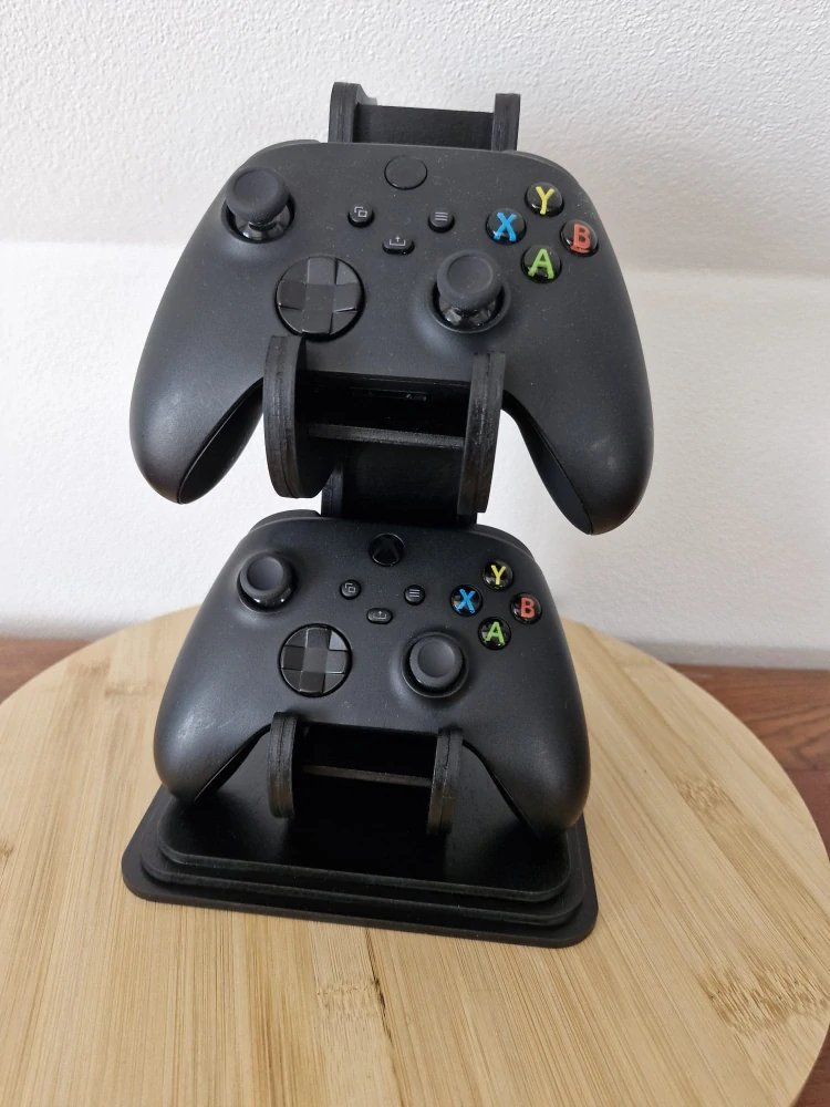 Dřevěný držák na ovladače X-BOX + sluchátka. Držák je vyrobený z březové překližky. Je dvouvrtvý, takže je pevný a stabilní.