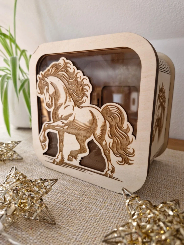 Dřevěná pokladnička z překližky s motivem je krásným a praktickým doplňkem, který může sloužit nejen jako úložiště pro vaše úspory, ale také jako dekorativní prvek vašeho interiéru.