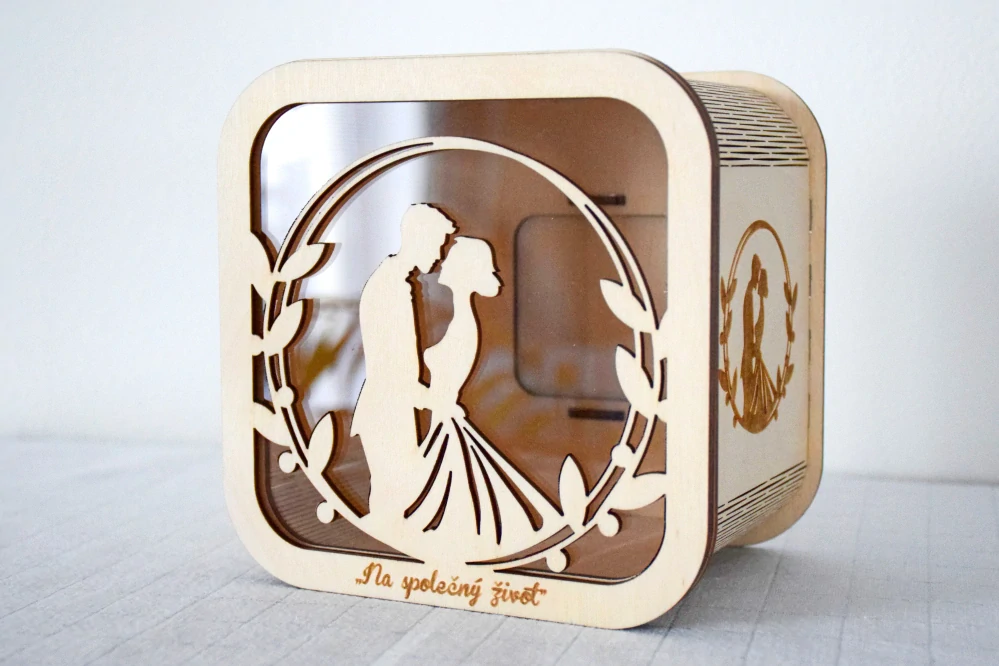 Dřevěná pokladnička z překližky s motivem je krásným a praktickým doplňkem, který může sloužit nejen jako úložiště pro vaše úspory, ale také jako dekorativní prvek vašeho interiéru.