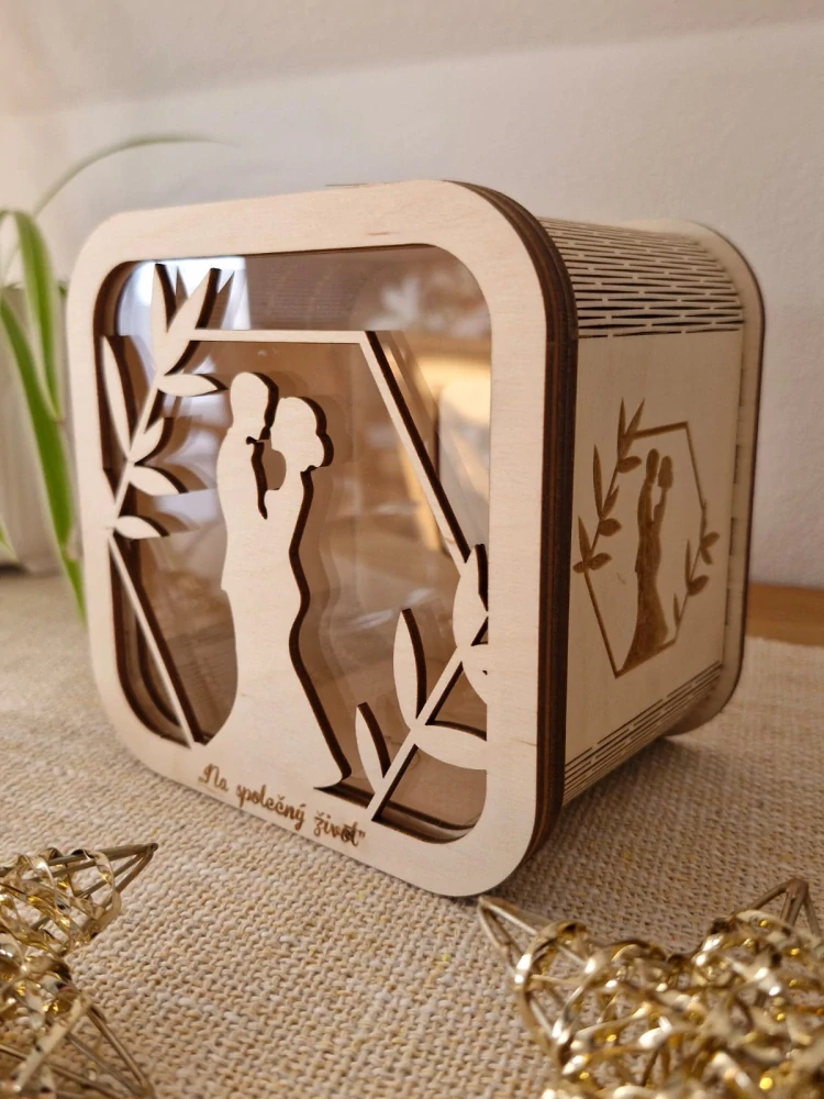 Dřevěná pokladnička z překližky s motivem je krásným a praktickým doplňkem, který může sloužit nejen jako úložiště pro vaše úspory, ale také jako dekorativní prvek vašeho interiéru.