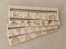 Dřevěné pravítko pro děti. Lze využít i při čtení nebo jako záložku. Výřez se používá při čtení, kdy se dětem zakryjí ostatní řádky a dítě se tak lépe soustředí na text, který čte.