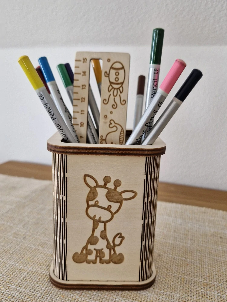Ozdobte dětem stůl s naším stojánkem na tužky. Krásná dřevěná dekorace s gravírováním. Naučte své děti uklízet pastelky na správné místo.