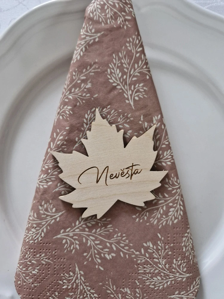 Svatební cedulka se jménem - Javorový listSkladem12 Kč/ ks10 Kč bez DPH