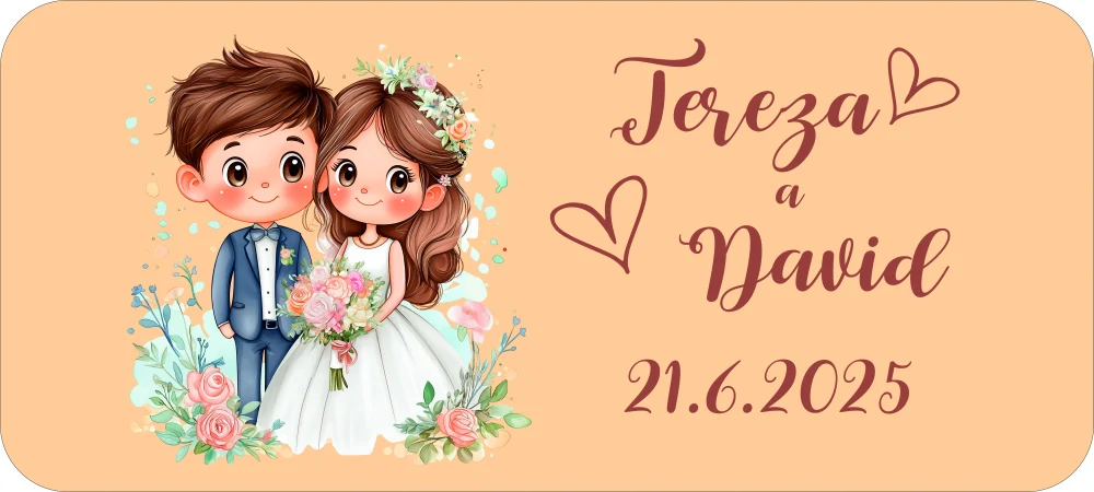Darujte novomanželům originálním způsobem peníze. Svatební obálka s barevným motivem a personalizací novomanželů. Vyberte motiv a udělejte radost. Novomanželé mohou později využít jako obrázek na zeď.